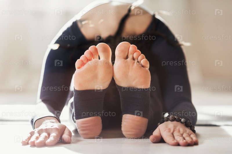 Женщина практикующая йогу, наклоняясь вперед, сидя, упражнения с головы до колен, поза пашчимоттанасаны