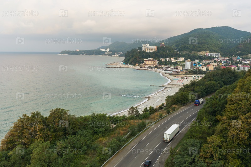 Красивый пейзаж в черном море с видом на деревню Небуг, Туапсинская область, Россия