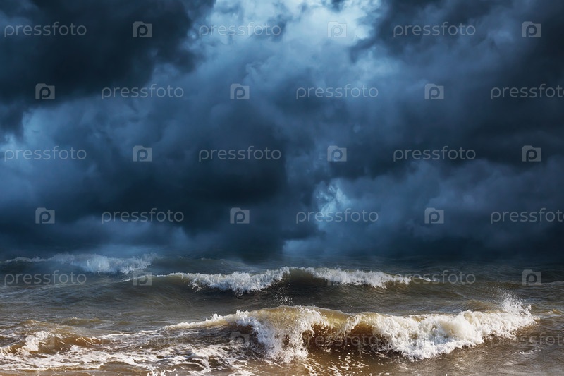 Грозовые тучи и шторм на море. Фон природы