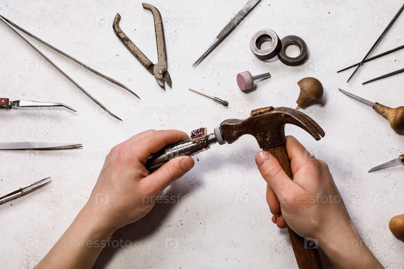 Вид сверху на производство в мастерской по увеличению размера Золотого кольца