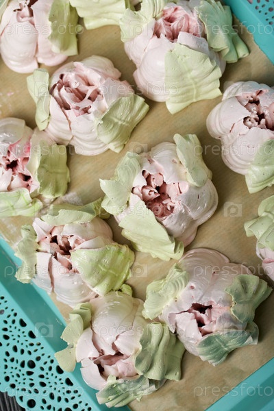 Зефирные тюльпаны. Натуральный домашний зефир. Разложил на подносе. Крупный план