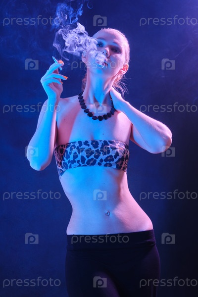 Женщина пускает дым