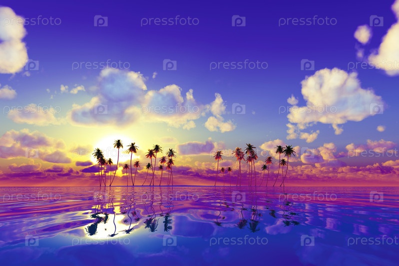Розовый закат над тропическим морем