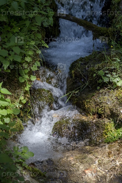 Небольшой быстрый ручей бежит в горах (Центральная Греция) крупным планом