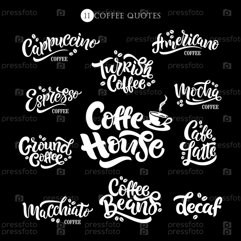 Кофейные слова. Векторный текст. Набор векторных надписей. Векторный дизайн типографии для кофейни. Празднование шаблона дизайна. Векторная иллюстрация