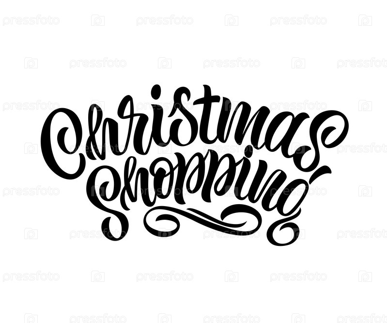 Векторная иллюстрация. Дизайн вектора типографии рождественских покупок для поздравительных открыток и плакатов. Рождественские покупки ручной надпись