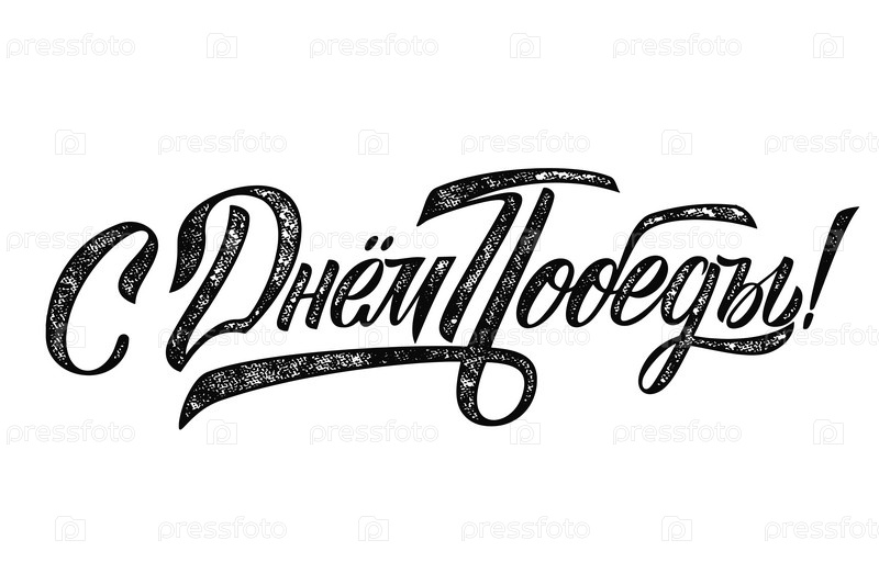 Перевод с русского: День Победы! Векторная иллюстрация. Русский праздник, рукописные надписи. Векторный дизайн типографии ко Дню Победы для поздравительных открыток и плакатов