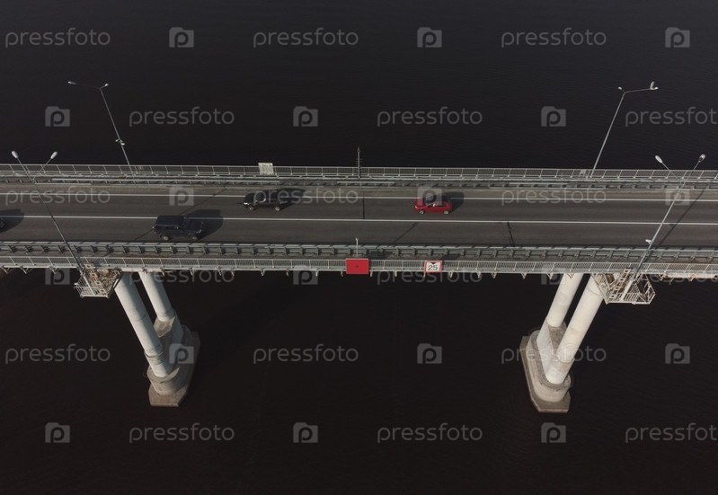 Автомобили проезжают по мосту через Сайменский канал. Вид с дрона