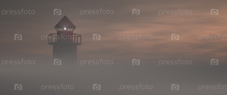 Маяк в утреннем хмуром тумане. Безопасность судоходства