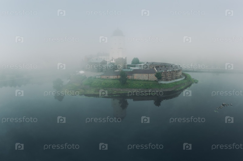 Исторический центр города Выборг. Вид на крепость в густом тумане