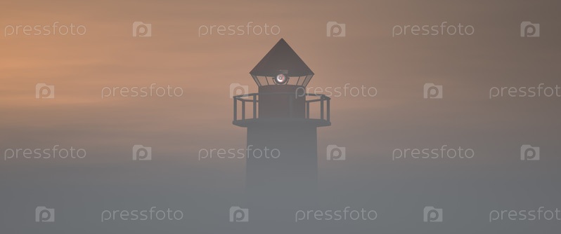 Башня морского навигационного маяка возвышается над туманом
