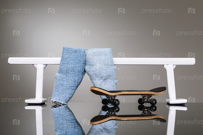 Накладка на гриф, джинсы и перила из белого металла для катания на небольших скейтбордах