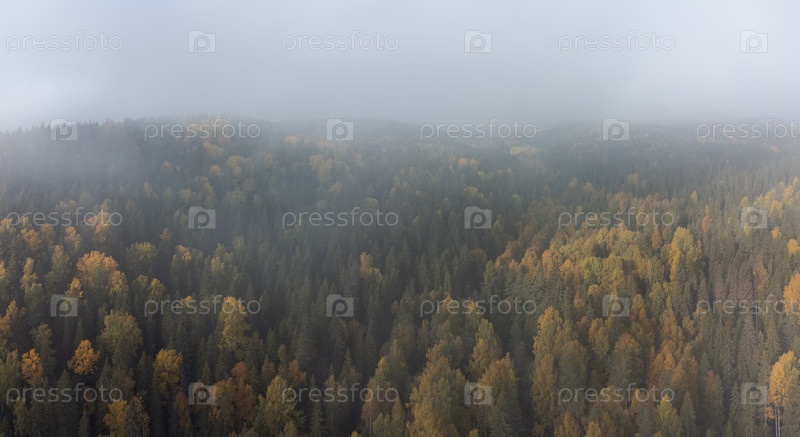 Окутанный туманом осенний лес. Посмотреть воздух