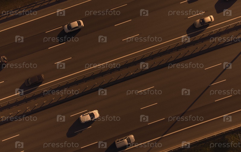 Автомобильное движение на шоссе. Вид с дрона. Тема дорожного хозяйства
