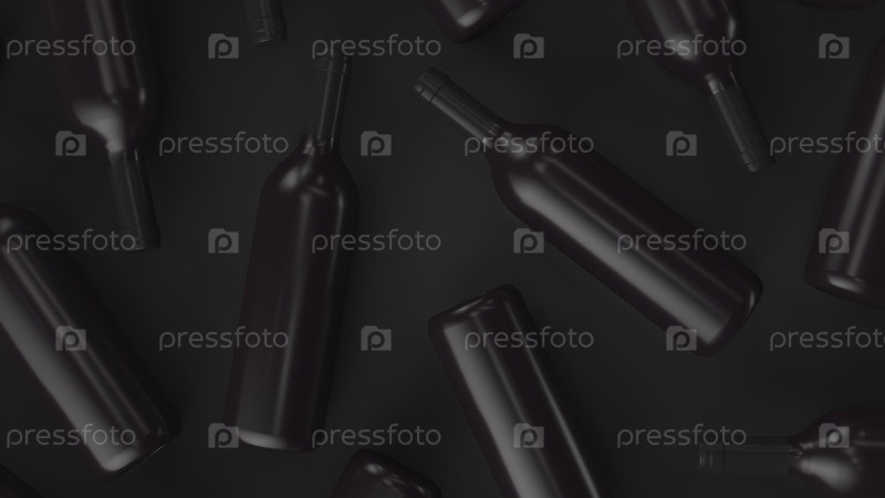 Винные бутылки на конвейере. Алкогольная продукция. Вид сверху