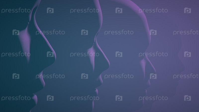 Гуманоидные головы с закрытыми глазами. 3д иллюстрация