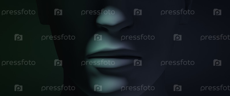 Освещенный рот на лице. 3д иллюстрация