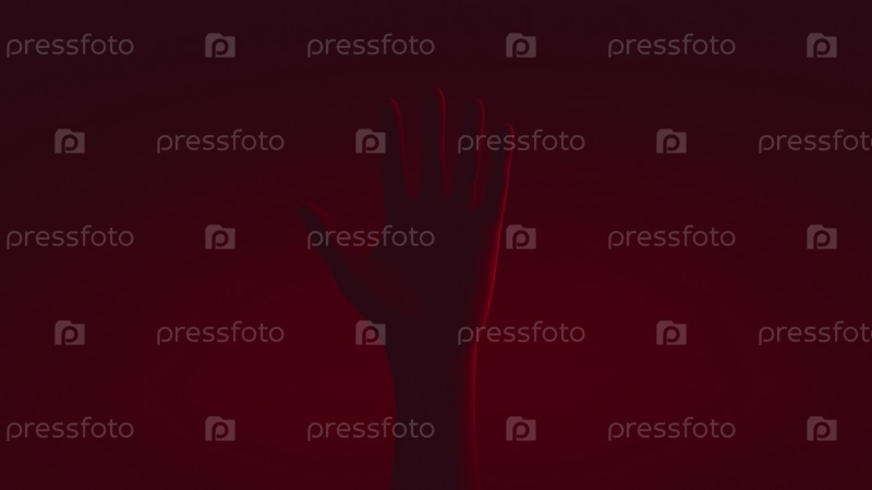 Поднятая человеческая рука. Крупный план. Красная подсветка