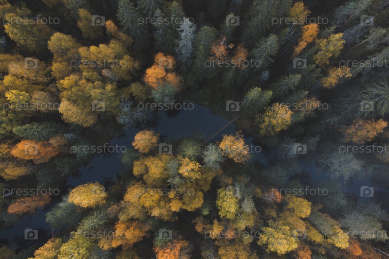 Красочная красивая растительность в лесу. С высоты птичьего полета