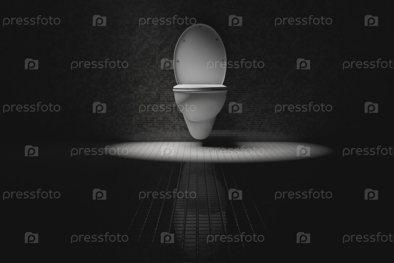 Туалетная комната. Открытый белый унитаз. Эффектное освещение