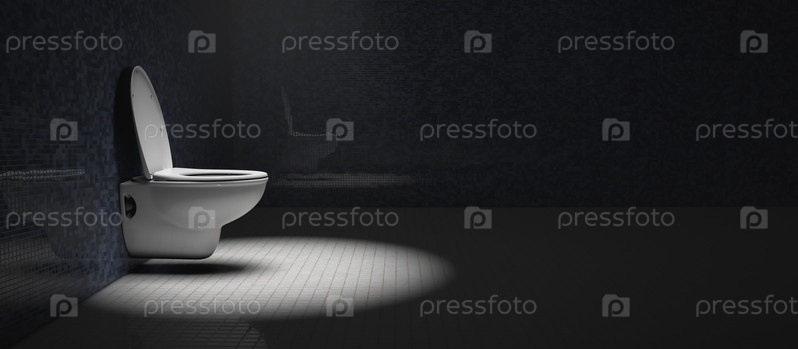 Керамический унитаз в тускло освещенной комнате. Условия и комфорт жизни