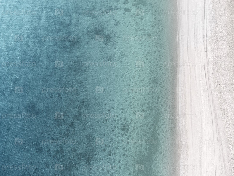 Берег лазурного чистого моря. Прозрачная бирюзовая вода. Вид сверху