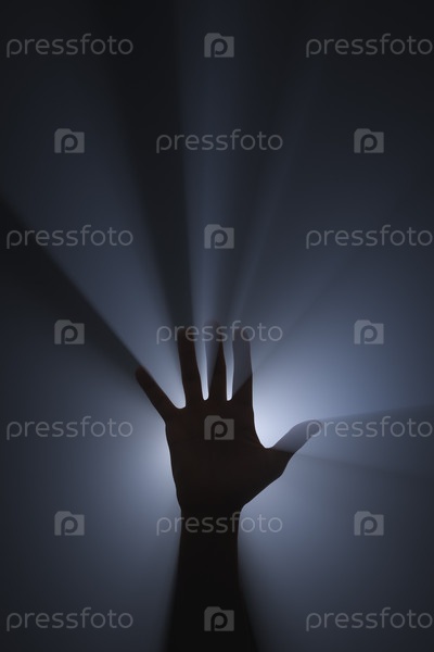 Поднятая рука. Источник яркого света за рукой