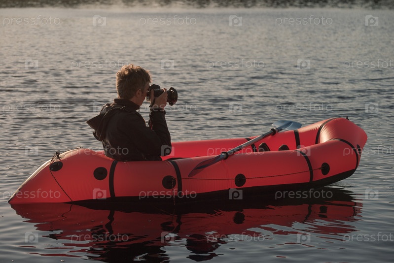 Фотосъемка с воды. Мужчина фотографирует с надувной лодки