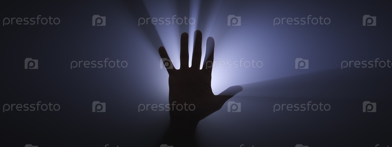 Поток света проходит через поднятую руку