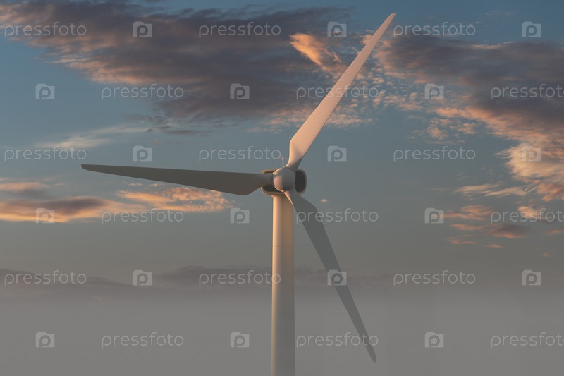 Гигантская турбина ветрогенератора на фоне живописного неба