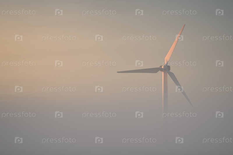 Ветряная электростанция виднеется в тумане. Воздушная вид