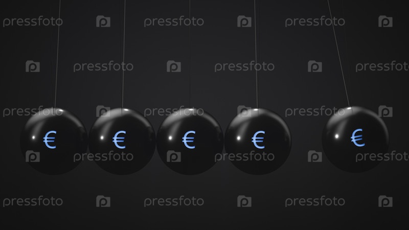 Черные висящие шары с символом валюты евро