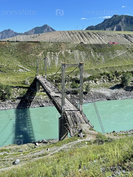 Старый мост через реку Катунь в селе Иня, Алтай, Россия