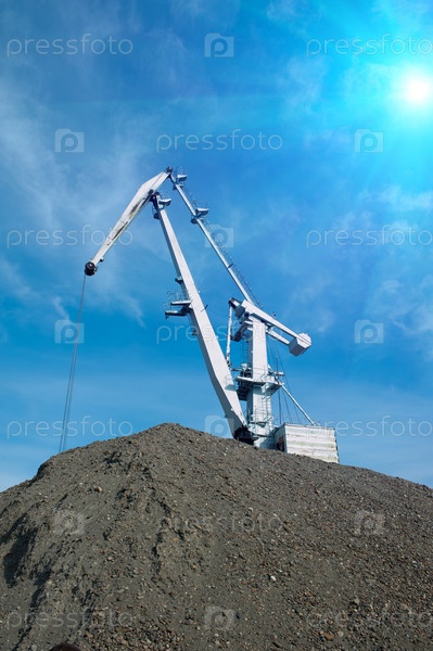 Кран на куче щебня