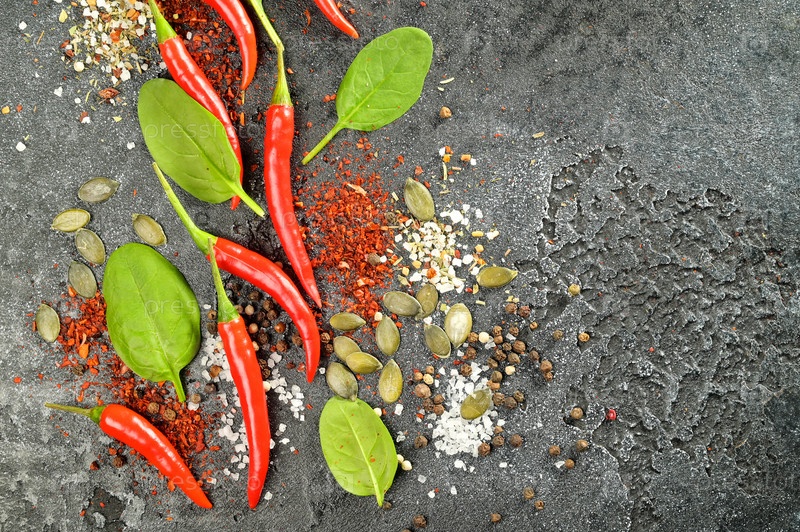 Специи Чили перец на черном фоне