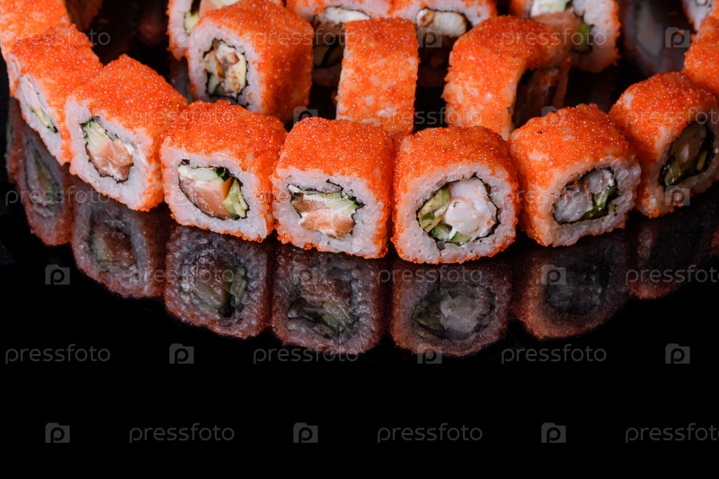 Японские ролы еда в ресторане на черном фоне