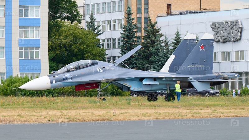 Российский самолет истребитель в городе