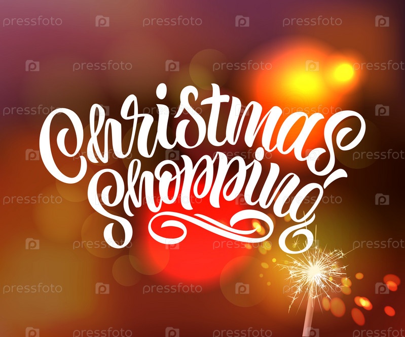 Дизайн вектора типографии рождественских покупок для поздравительных открыток и плакатов. Рождественские покупки ручной надписи на размытом фоне. Празднование шаблона дизайна. Векторная иллюстрация