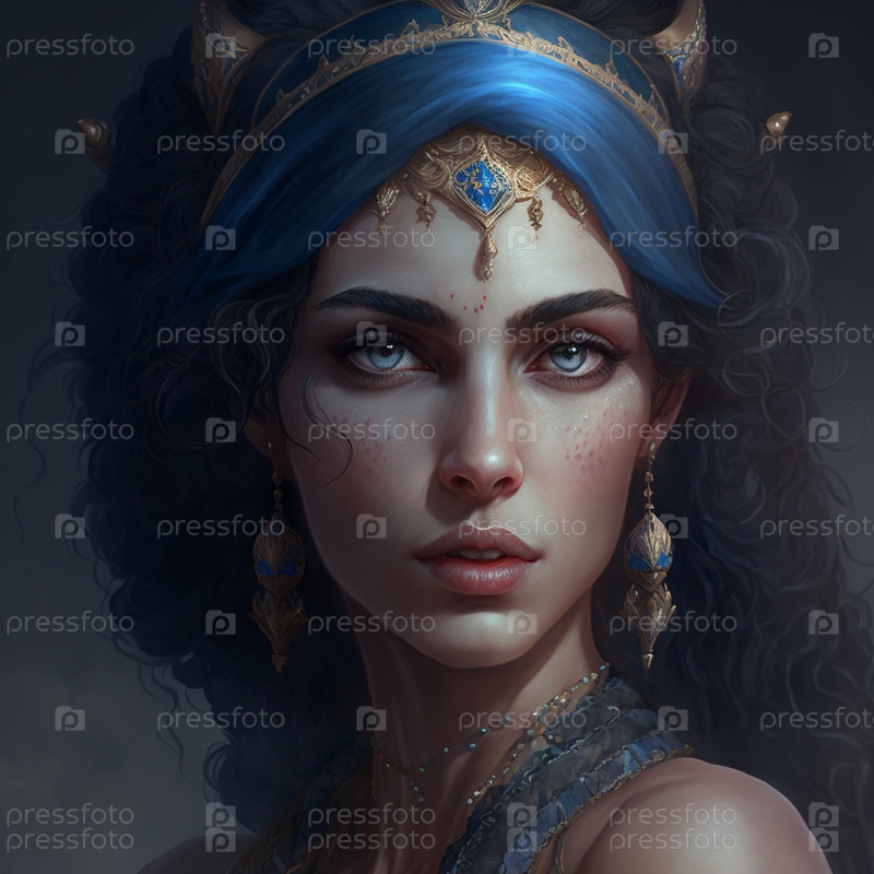 Шумерская царица, богато одетая в голубой шелковый тюрбан