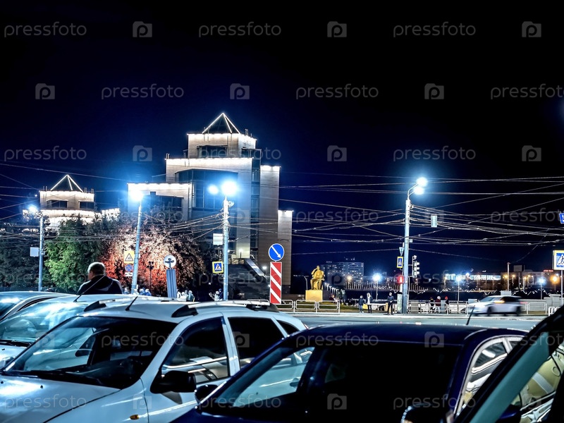 Ночной город осенью в центре, возле оперного театра, Челябинск, Южный Урал