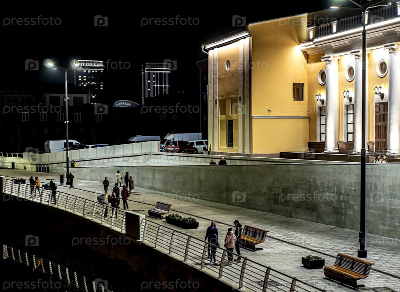 Ночной берег реки Миасс в городе Челябинск