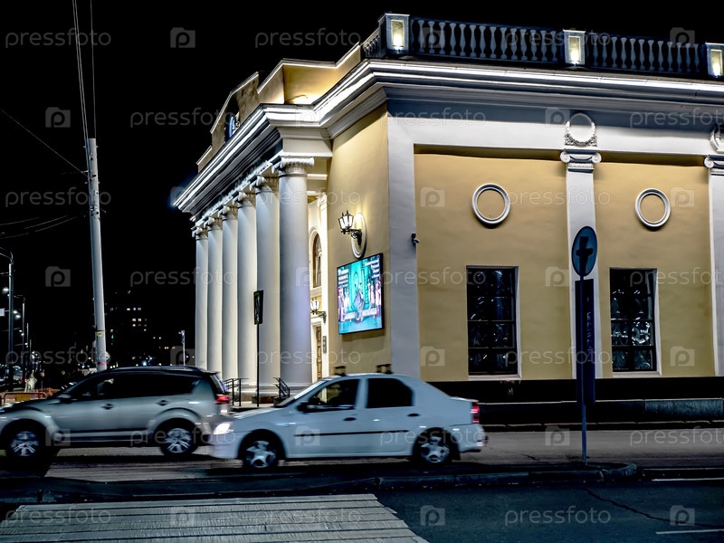Ночной город осенью в центре, возле оперного театра