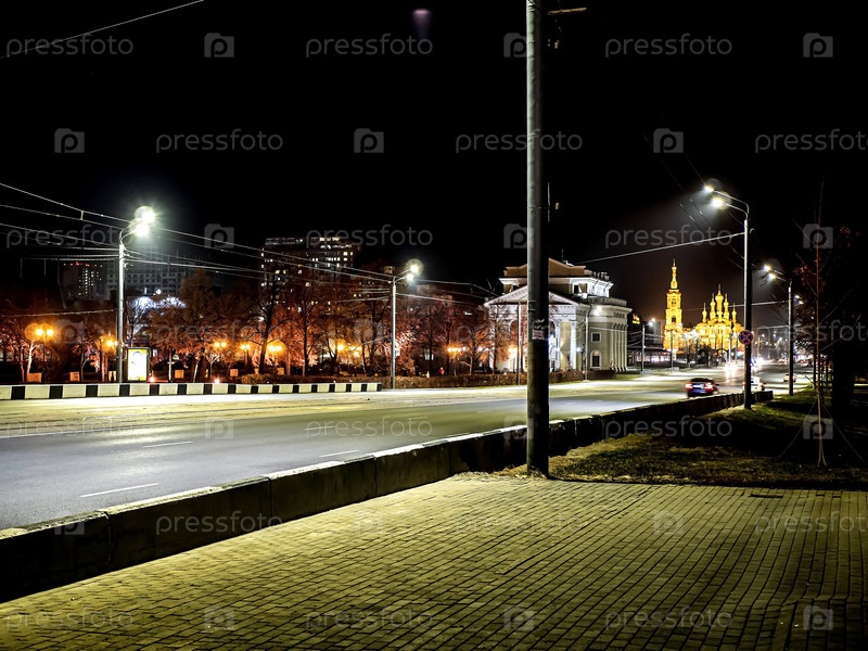 Ночной город осенью в центре, возле оперного театра