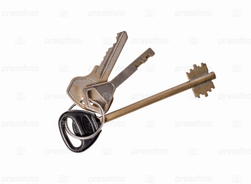 Набор ключей от дома или квартиры, изолированные на белом фоне