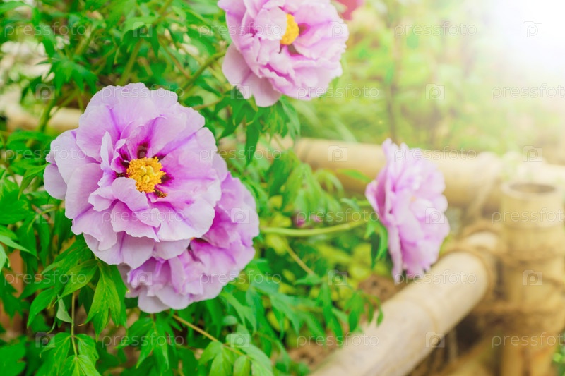 Крупный план красивого цветущего розового пиона в саду в солнечный день