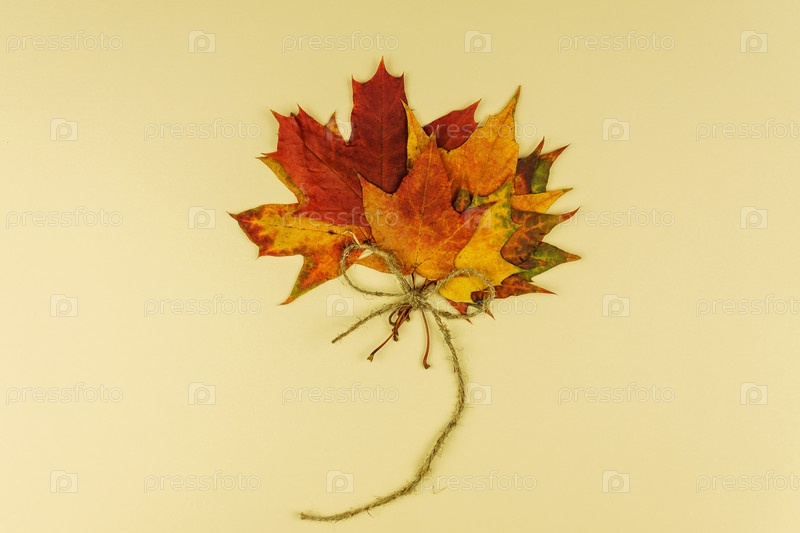 Осенний букет из сухих кленовых листьев на бежевом фоне