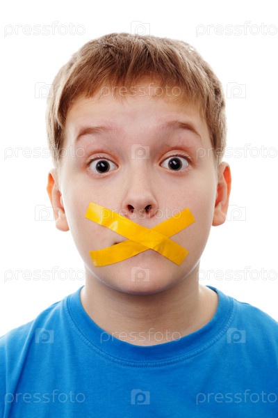 Цензура, грустный мальчик с заглушенным скотчем