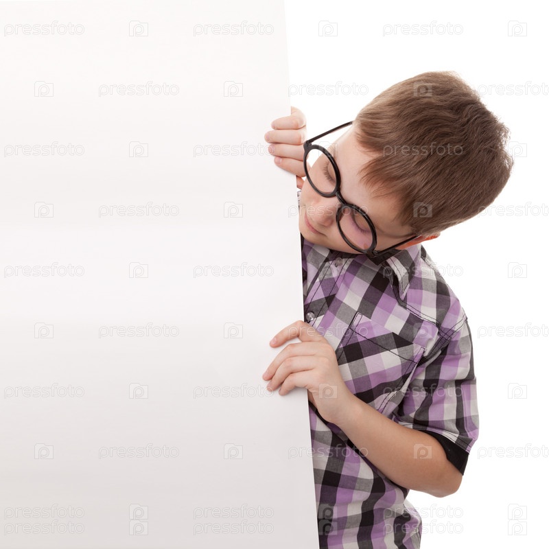 Подросток стоит у белой пустой карты, подросток держит пустой рекламный щит