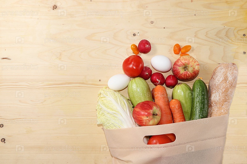 Здоровая натуральная пища в эко-сумке, концепция здорового образа жизни, ноль отходов. Доставка еды, пожертвования, коронавирусный карантин. Овощи, фрукты и зелень в тканевой упаковке, вегетарианская диета, селективный фокус