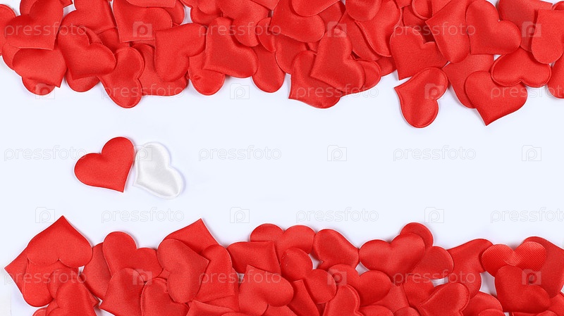 Концепция ко Дню святого Валентина или Женскому дню, поздравительная открытка, рамка из красных сердец с местом для текста, поздравления с праздником, днем рождения, выборочный фокус